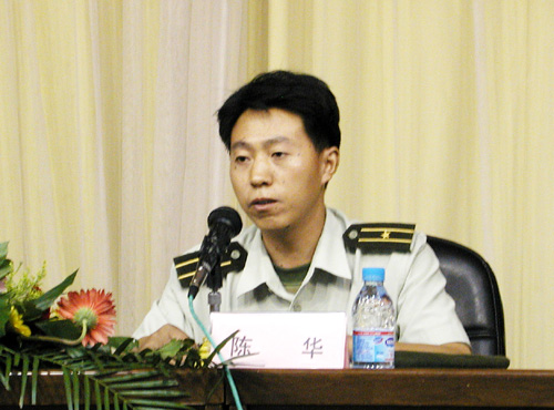 承训部队教官团负责人、临汾旅教导队副教导员陈华讲话