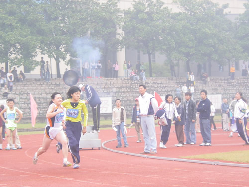 2005年10月28日上午,在南京农业大学第三十三届田径运动会上,女子100米预赛率先举行。伴随着起跑枪声的响起,农学院参加该项目的0066号选手张诗苑及0052号选手伯云果断敏捷地起跑了。她们矫健的身姿和有力的步伐是力与美的完美组合。随着她们的奔跑,距离终点越来越近了。在这关键时刻,两位巾帼英雄毫不减速,奋勇迈步。最终,她们以极大的领先优势通过终点线,分别在不同的小组中以第一名的绝佳战绩顺利晋级决赛。
