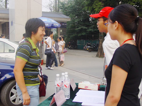 农学院的迎新工作准备的早,安排的细致,力求给每一个新生以亲切温暖的感觉。在校门口,看到新生走进校园,接待的学生就主动走向前,热情地向他们指引道路,告诉他们宿舍和新生报到处该怎么走。在宿舍,新生一踏入房间,行李房的学生马上为他们送上铺盖,让新生和家长感受到家的温暖。在新生报到处,咨询处、计财处、服务处、学院盖章处、绿色通道处、材料收集及发放处、饮用水供应处等等各处的工作都井井有条。工作的学生主动为新生和家长送上清凉的饮用水,维持着现场的秩序,认真快速地办理好各种手续,并不厌其烦地给新生解释他们所不懂的东西。