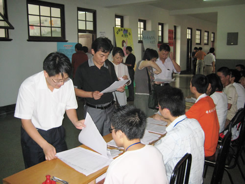 今天一早,李昌新书记便亲临我院位于主楼214的迎新主战场,对我院迎新工作进行协调指挥工作。同时也向奋战于一线的迎新同学们送去了慰问。在领导的指挥与关怀下,在教室内埋头工作的同学,心头一热,干劲更足了,誓要秉承我院优良传统,认真周到的服务新生,帮助他们顺利完成报到工作。