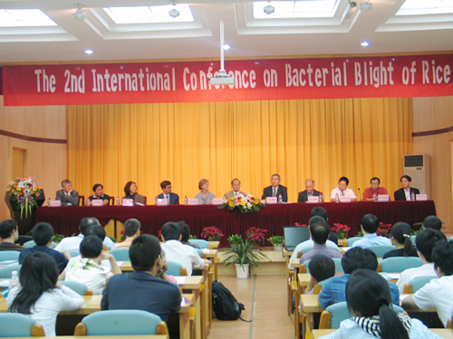受我校2007年度“农业生物灾害科学创新引智基地”计划项目(简称"111"计划)、农业部行业专项(nyhyzx07-056)、国家自然科学基金委和教育部有关项目的资助,由南京农业大学主办的“第二届国际水稻白叶枯病大会”(The 2nd International Conference on Bacterial Blight of Rice)于2007年10月1日上午9点在南京农业大学金陵研究院国际报告厅隆重开幕。来自美国、日本、法国、印度、菲律宾、韩国、孟加拉国、新加坡八个国家以及国内有关高校及科研机构的近100名专家学者参加了此次研讨会。