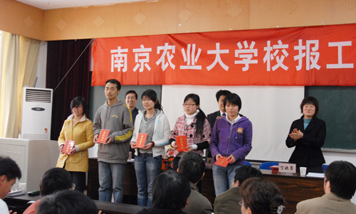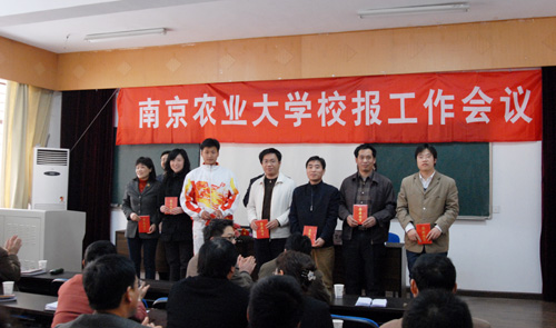 4月2日下午,我校在大学生活动中心的党校教室召开2008年校报工作会议。会上对2007年度校优秀教工通讯员、优秀学生记者和好新闻奖进行了表彰。校党委副书记花亚纯、党委宣传部部长倪峰、副部长丁晓蕾出席了会议。会议由倪峰部长主持。会议还邀请《金陵晚报》资深教育新闻记者戚若予对教工通讯员和学生记者进行了本年度的首次业务培训。