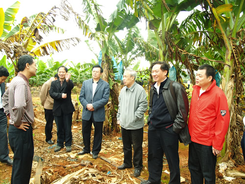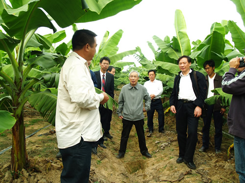 由我校沈其荣教授主持的农业部948重大滚动项目“固体有机废弃物高附加值资源化技术引进、创新研究与产业化开发”和农业部公益性行业科技专项“有机(类)肥料产业技术体系研究”,重点引进关键技术并进行消化吸收再创新和产业化开发。经过多年的努力,该课题组利用分离到拮抗巴拿马枯萎病原真菌的拮抗菌,经液体发酵并接种到不同配方堆肥中进行二次固体发酵生产微生物有机肥。该微生物有机肥料在海南香蕉种植基地大面积试验示范,结果表明施用该微生物有机肥能将香蕉的巴拿马枯萎病控制在4%以下,而对照田块的发病率均在30%以上。2008年12月7-9日中国工程院院士蔡道基研究员带领一行专家前往海南考察该成果的示范工作,来自海南香蕉种植大户(2000亩以上/户)的70多个蕉农和企业代表,一起观摩了该课题组在福山、乐东等地的香蕉生产试验示范区。蕉农们怀着激动的心情说,南农大的专家真了不起,解决了多少年来一直困绕香蕉种植的问题,本来我们这些香蕉种植大户都想去越南、老挝、广西等地找田块种植香蕉,现在我们可以在这里继续种植了,很多企业纷纷要求生产或代理经销该微生物有机肥。蔡院士等专家看了现场,并与蕉农和种植企业代表座谈后说,该成果不仅具有可靠的理论依据,更在防治效果上具有重大突破,值得大力推广,为我国香蕉生产业的可持续发展做出了重大贡献。