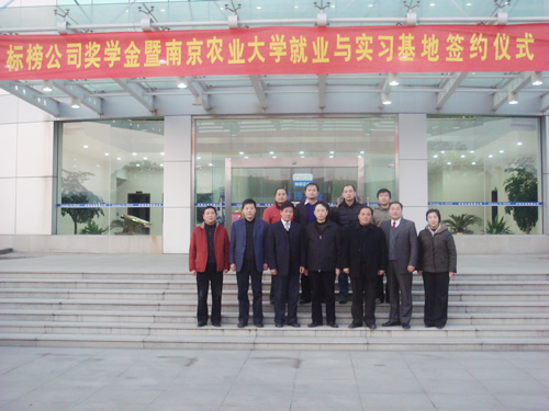 12月24日,校党委副书记庄娱乐、学生处处长刘营军、外国语学院党委书记景桂英、外国语学院党委副书记石松等一行来到了位于无锡江阴华西村的江阴标榜有限公司,参加了江阴标榜奖学金签订及南京农业大学就业实习基地揭牌仪式。