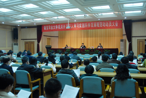 在动员大会上,校党委副书记、深入学习实践科学发展观活动领导小组副组长花亚纯同志作了重要讲话,对校机关学习实践活动提出了具体要求:一是进一步加强学习,提高认识,切实把思想统一到中央和学校的决策部署上来;二是紧密结合实际,突出实践特色,要着力解决本部门工作中的突出问题,务求在推进机关工作服务水平、服务意识及科学发展上取得实效;三是加强领导,周密部署,务求实效。各职能部门要严格按照学校和机关党委的要求,结合部门实际,针对工作中的各个环节,逐一查找问题,深入分析原因,确保学习实践活动各项任务落到实处。领导干部要讲真话、办实事,求实效,以身作则,率先垂范,充分调动群众的积极性,集思广议,群力群策。他希望校机关全体党员要以学习实践活动为契机,正确处理好机关日常工作与学习实践活动的关系,切实做到两手抓、两促进、两不误,为学校向高水平研究性大学迈进和可持续发展的目标做出更大贡献。