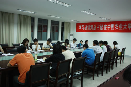 今年是五四运动90周年。在五四青年节即将到来之际,中共中央总书记、国家主席、中央军委主席胡锦涛来到中国农业大学,同广大师生共迎五四青年节。在与师生代表的座谈中,总书记提出在开创祖国美好未来的征程上,青年学生责任重大、使命光荣。他希望广大青年学生把爱国主义作为始终高扬的光辉旗帜,把勤奋学习作为人生进步的重要阶梯,把深入实践作为成长成才的必由之路,把奉献社会作为不懈追求的优良品德,在实现中华民族伟大复兴的历史征程上谱写出更加辉煌的青春乐章。总书记的讲话在全国青年学生中引起强烈反响。5月5日,我校学生会向各学院学生会、各学生社团发起号召,号召全校各级学生组织深入学习总书记在同中国农业大学师生代表座谈时的讲话精神,校学生会于5月7日晚在教四组织开展了胡锦涛总书记五四讲话精神座谈会,同时各学院、个社团也纷纷组织了学习总书记讲话精神座谈会,在全校学生范围内掀起了一股学习总书记讲话精神的热潮。