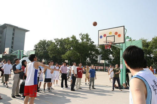 5月21日下午,校工会在篮球场组织了一场教职工定点投篮比赛。22个部门工会144名选手参赛。比赛注重大众参与性,共分24组,每组6人,每人投篮一分钟,每组以进球个数多者为胜。