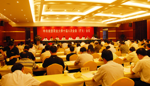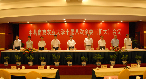 9月2-3日,为期一天半的中共南京农业大学十届八次全委(扩大)会议隆重召开。全体校领导出席会议,学校党委委员、纪委委员、中层干部参加了会议。本次会议主题是:以科学发展观为指导,巩固学习实践活动成果,继续深入落实整改项目,全面部署新学期工作,同心协力,坚定信心,乘势而上,奋力开创学校科学发展新局面。