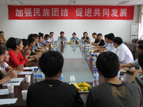 参会的少数民族同学,结合自身感受,畅谈了祖国60年来发生的巨大变化,和少数民族地区经济的发展和人民生活水平的提高。同时表达了对党和政府采取优惠政策大力培养少数民族大学生的感激之心,并表示不辜负国家、学校和家长的希望,努力学习,不断提高自身素质,努力为社会主义建设和民族地区经济发展作出自己最大的贡献。座谈会上,少数民族学生还就少数民族学生的教育培养以及生活和就业问题提出了一些建议,参会领导和相关处室负责人作了详细的解释和说明。