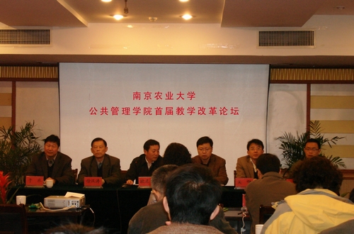 4月10日上午,南京农业大学公共管理学院首届教学改革论坛在安徽滁州召开,院党委书记吴群、院长欧名豪、副院长于水、院长助理王承武及全体教师出席了会议,会议还特邀校教务处副处长李俊龙、教学督导徐汉涛教授。会议为期一天,论坛主题是本科生教学质量提升与人才培养改革,论坛的主要目的是总结过去的教学工作,查找当前教学工作存在的问题,寻求有效的解决办法。论坛共有四个部分构成:校院教学工作报告、系主任经验交流、优秀教师代表发言,督导与青年教师座谈等,欧名豪、吴群、于水分别主持了论坛。