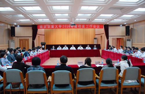 5月13日下午,南京农业大学2010年档案工作会议在金陵研究院报告厅召开。会议由校办主任李友生主持。校党委常委、副校长孙健、各单位分管档案工作负责人、各单位专兼职档案员和综合档案室全体同志出席了会议。