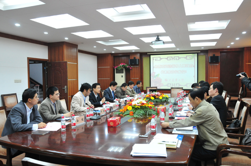 会上,胡锋首先表达了对张陆彪一行的热烈欢迎以及对滁州人民的深厚感情,并向来访客人介绍了我校的历史沿革、学科力量、科技实力以及近年来的产学研合作进展情况。他表示,我校与滁州市的校地合作平台搭建以后,校地合作关系将更加紧密,我校将综合利用科技实力,从共建基地、孵化平台、人才培养及输送、科技成果转化以及农业信息化等方面为滁州市的科技腾飞做出贡献。朱云霞也从区位优势、资源优势、环境优势等方面介绍了滁州的发展建设情况。张陆彪也表达了对母校培养的感激之情以及促成滁州与我校全面合作的强烈愿望,并邀请我校参加中国第三届农歌会。