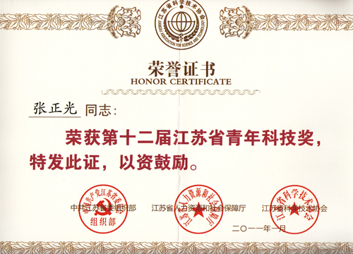 江苏省青年科技奖是中共江苏省委组织部、江苏省人力资源和社会保障厅、江苏省科协共同设立并组织实施,面向全省广大青年科技工作者的奖项。每两年评选一次,每届授奖人数为20人,产生10名“江苏省十大青年科技之星”和10名“江苏省青年科技奖”获得者,旨在发现和培养进入国内一流乃至世界科技前沿的青年学术和技术带头人,促进青年科技人才的成长;表彰奖励在我省经济发展、社会进步和科技创新、创业、创优中做出突出成就的青年科技人才;激励广大青年科技工作者为实现“两个率先”、建设以人为本、全面协调可持续发展新江苏做出贡献。
