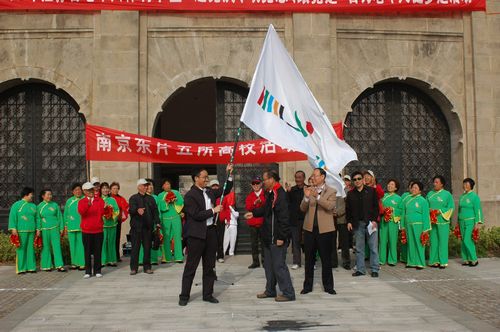“江苏省老年人体育节暨百万老年人健步走活动”是江苏省老年人体育协会开展的大型群众性老年人体育活动,创办于2006年,现已成为全省老年人体育健身活动的一个品牌。南京东片五所高校老年体协每年同期轮流主持承办五校老同志参加的这一老年人体育盛会,今年的活动由南京工业职业技术学院承办,2012年的活动将由我校承办。开幕式上,我校人事处副处长杨坚代表南京农业大学出席了会旗交接仪式,并接过会旗。