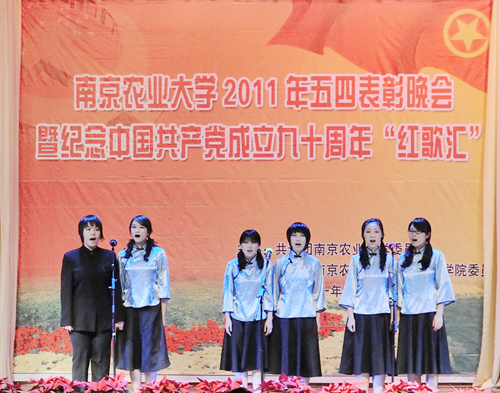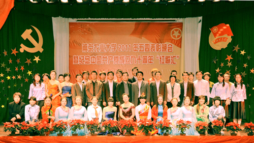 5月4日晚,南京农业大学2011年“五四”表彰晚会暨纪念中国共产党成立90周年“红歌汇”在大学生活动中心举行。校党委副书记花亚纯,党委办公室主任戴建君,研究生工作部部长刘兆磊,团委书记夏镇波,党委宣传部副部长丁晓蕾,学生工作部副部长姚志友,教务处副处长高务龙,团委副书记夏拥军、王超和各学院党委副书记、专职团干部与400多名团员青年一起观看了晚会。晚会期间举行了五四红旗团委、五四红旗团支部、优秀团员标兵和优秀团支部、团干、团员颁奖仪式。