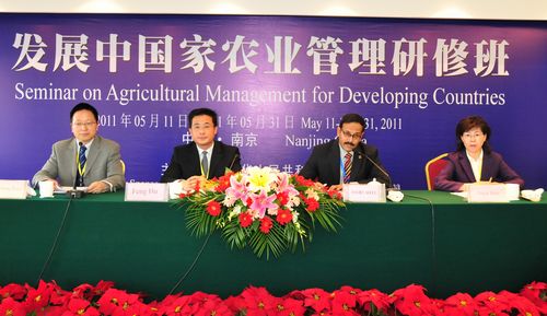 5月11日上午,商务部委托我校举办的发展中国家农业管理研修班开班仪式在我校学术交流中心举行。副校长胡锋,国际教育学院院长张红生,副院长韩纪琴、石松以及国际教育学院的部分工作人员出席仪式。张红生主持仪式。