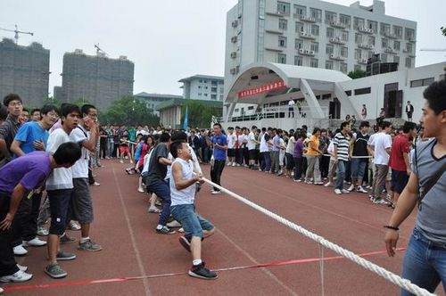 上午9:00,第六届体育大会正式开始。本次运动会由垫砖过河、海底捞月、猛龙过江、齐心协力、双龙戏珠、开火车、花样接力、三分钟定点投篮、时速跳绳、花式毽法、极品飞车、鸭子赶路和力拔千军13个项目组成。各学院派出了实力强劲的队伍进行各个项目的角逐。整个运动会中人气最高的项目当属“力拔千军”了。各支参赛队认真地排兵布阵,研讨战术,使出了浑身解数。哨声响起,裁判的红旗在空中划出了一道优美的弧线,现场沸腾了,运动员们在拉拉队的呼喊中一齐用力,将整个体育大会推向了高潮。上午的体育大会笑声不断,收获不断,充分展现出南农学子的体育风采。