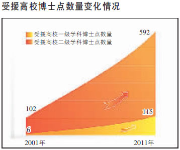 10年来,我们欣喜地看到,通过对口支援、协同共建,贵州大学、宁夏大学、西藏大学、青海大学、石河子大学5所受援高校先后进入了“211工程”国家重点建设高校行列,为西部高等教育新增了一批龙头高校,为西部高等教育发展提供了可持续的发展支撑。