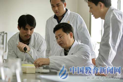 2006年6月16日,南京农业大学博士生导师麻浩在新疆农业大学棉花分子育种实验室里,指导研究生实验。(资料图片) 本报记者 鲍效农 摄