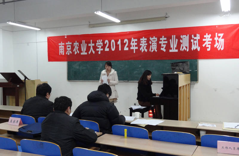 2012年2月12日,我校表演专业测试江苏省考点的报名工作在教四楼进行,此次报名吸引了近230名考生参加。2月13日、14日在我校进行了专业测试工作。 学校高度重视此次测试,成立了表演专业测试工作领导小组,组织召开了表演专业测试考务工作会议。面对报考人数多、测试项目多的情况,我校进一步规范了表演专业测试程序,为测试的顺利进行做了大量前期准备工作。在测试过程中,考官严格按照学校要求,遵循公平、公正、公开的原则评分,现场组织工作井井有条,考场秩序良好。