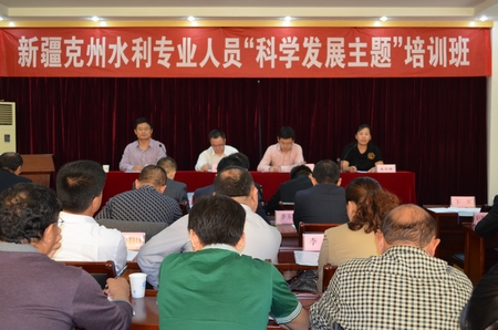 本期培训班30名学员全部来自克州两县一市水利战线,前期理论学习5天,由来自江苏水利厅的经验丰富的专家授课,还有南京农业大学教授承担了部分公共课的教学。后期学员还将去扬州江都水利枢纽等地考察。