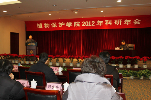 韩召军作了“撰写基金项目申请书的几点体会 ”的报告; 吴益东对植保学院2012年的科研工作进行了回顾和总结,2012年植保学院引进高层次人才2名,发表9.0以上SCI论文两篇,获国家科技进步二等奖一项,全国百篇优秀博士论文一篇,1人获得国家杰出青年基金资助。随后,多位教授和教师介绍了自己当前的课题和研究成果。