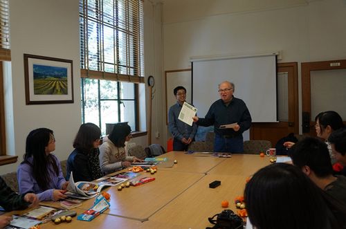 在加州大学伯克利分校期间,该校农业经济系主任Brian Wright教授向访学团致欢迎辞。随后,该院David Zilberman教授就其研究领域,水利灌溉和转基因植物给同学们做学术报告,就转基因植物的利弊提出了自己的独到见解。来自清华大学的该校农经系博士生孙震,向同学们介绍了在伯克利大学的学习和生活经历,并带领大家参观了校园。