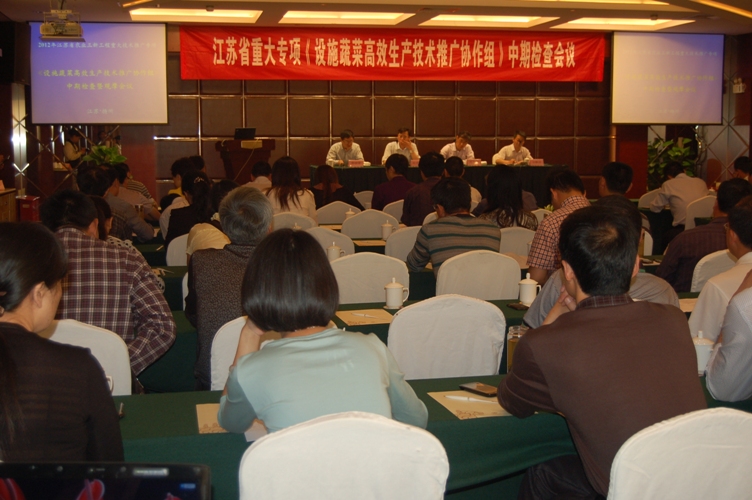 5月20日至22日,2012年江苏省农业三新工程重大技术推广专项《设施蔬菜高效生产技术推广协作组》中期检查工作会议在扬州召开,江苏省农业委员会科教处副处长杜永林、南京农业大学郭世荣教授、扬州市农委蔬菜处处长陈志明、扬州大学园艺与植物保护学院江解增教授及44个项目实施单位负责人、代表共计95人出席了会议,会议由我校郭世荣教授主持。