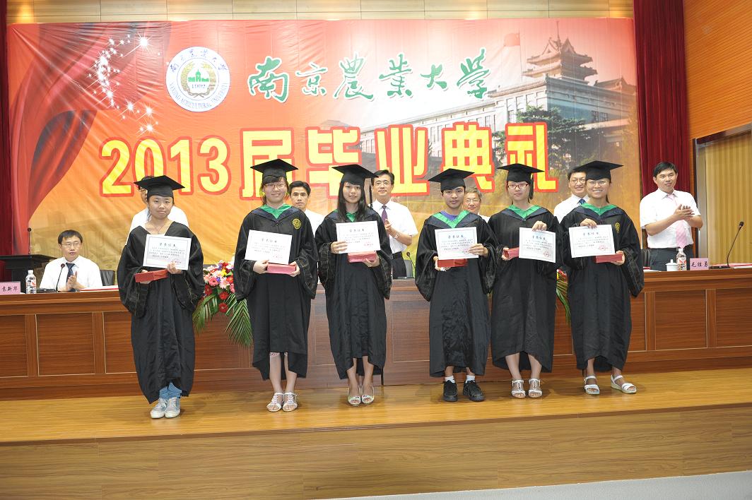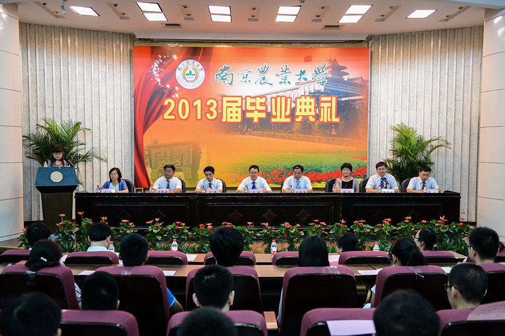 机关部门领导宣读了南京农业大学《关于表彰2013届优秀毕业生的决定》等文件。希望受表彰的同学戒骄戒躁,再接再厉,在今后的工作和学习中,弘扬母校优良传统,继续发挥模范带头作用;并希望广大毕业生同学,以先进为榜样,自觉肩负起建设祖国、服务社会的历史使命,在新的学习、工作岗位上建功立业,回报母校,报效国家。典礼上,校、院领导向毕业生和优秀毕业生颁发了毕业证书和优秀毕业生荣誉证书。