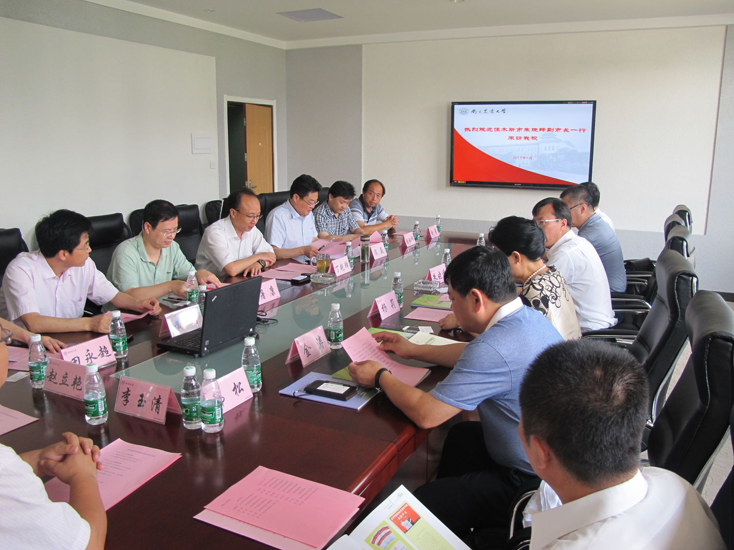 2013年7月10日,佳木斯市副市长朱晓峰一行来我校交流访问。我校副校长丁艳锋接待了来宾。科学研究院副院长、农村发展学院院长陈巍主持会议。