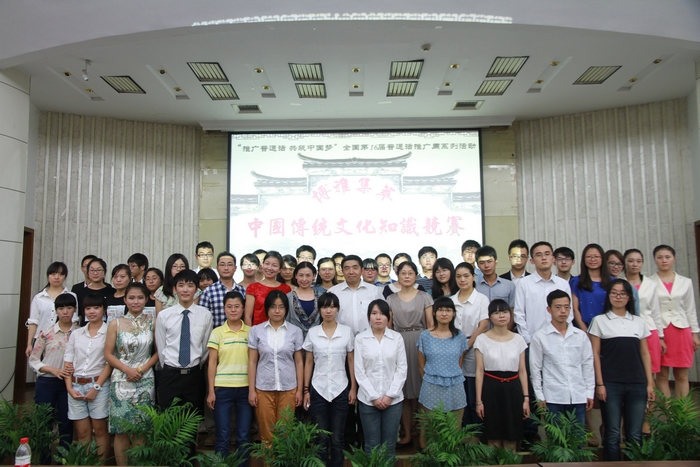 “博雅集萃”中国传统文化知识竞赛是我校“推广普通话 共筑中国梦”全国第十六届普通话推广周系列活动之一。活动自7月初开赛,各学院积极推荐优秀选手组队参赛。经过激烈角逐,共有10支团队入围决赛,工学院的“李唐圆梦队”技压群芳,获得冠军。朱梅梵和程钢老师对本次比赛的“打擂”形式、竞赛的知识内容及对中国传统文化和普通话的推广作用给予了高度评价。