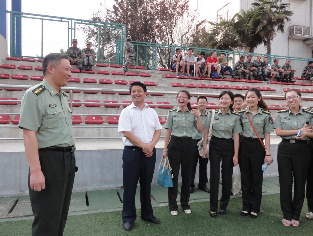 9月22日下午,2013年学生军训工作领导小组组长、校党委副书记花亚纯在人武部部长刘玉宝、副部长何东方的陪同下,走进训练场视察新生军训工作 。