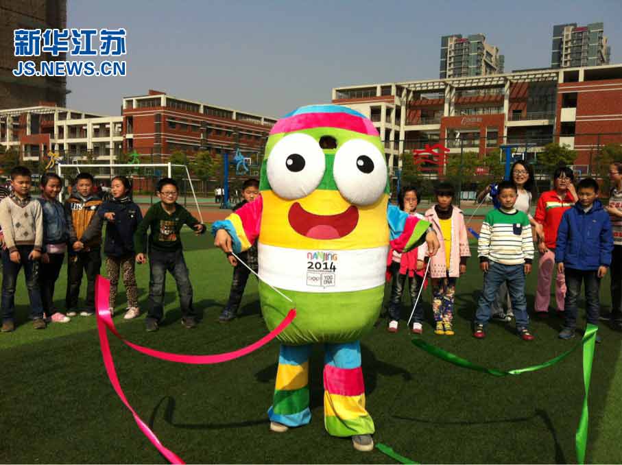 新华网南京4月2日电(刘国超)今天下午,130多名来自南京农业大学工学院学生会的志愿者和40余名青奥志愿者,来到“禾苗梦——关爱外来务工子女支教活动”对口单位浦口区泰山小学,通过动画和小组讨论等形式,传播青奥文化,介绍青奥会吉祥物“砳砳”的形象、寓意以及青奥小知识,让小朋友们在快乐生活中感受青奥,认识青奥,了解青奥。