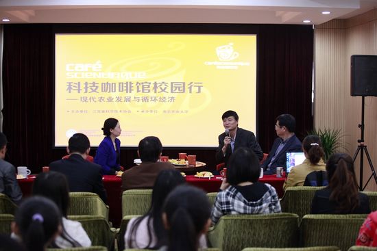4月15日下午,江苏省科学技术协会主办、南京农业大学承办的“科技咖啡馆校园行活动”在图书馆1902信息共享空间举行。本次活动邀请了美国密西西比州立大学植物遗传学博士汤斌、我校经济学教授周应恒就“现代农业发展与循环经济”做主题交流。我校副校长戴建君致欢迎词。江苏省科学技术协会副主席阮仁良、江苏省科协国际部副部长王安宁,以及南京大学、东南大学、南京理工大学、南京农业大学等相关专业师生参加了此次活动。活动由科学研究院综合计划处处长胡燕主持。