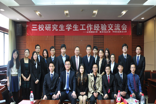 27日上午,中南财经政法大学、山东财经大学和我校研究生会代表团在中南财经政法大学文泉楼进行了深入交流。三校研究生会代表就各自研究生会机构设置、品牌特色活动、研会干部培养、研会系统协调机制和校际研究生会沟通平台建设等方面进行了详细阐述,并就工作过程中遇到的问题进行了细致讨论。