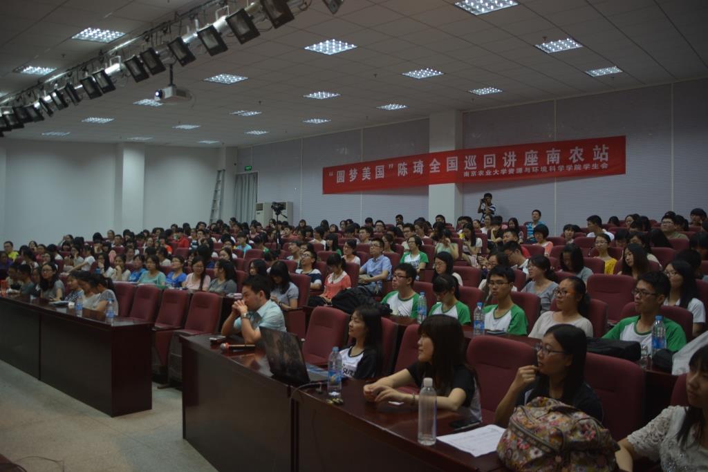 2014年6月7日晚,微臣教育创始人陈琦举办的“圆梦美国”GRE讲座在教四楼报告厅开讲。南京农业大学的众多学子参加了本次讲座活动。本次活动由资源与环境科学学院学生会主办。
