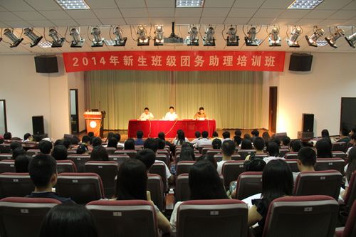 本次团务助理培训班采取集中学习、个人自学、团务助理沙龙相结合的形式,根据团务助理的工作性质职责,设计了“90后大学生心理特点和引导策略”“团务工作基础知识和团务助理的职责要求”“大学新生常见的适应性问题和对策”“人际沟通交往与领导艺术”等课程,邀请校内外相关领域的专家老师进行授课。同时,安排第五批优秀团务助理代表进行经验分享,为新一批团务助理答疑解惑。我校2014年新生班级团务助理共计132人,将在新生入学后广泛开展大学生活引导、新生入学适应、困难群体帮扶等系列工作。