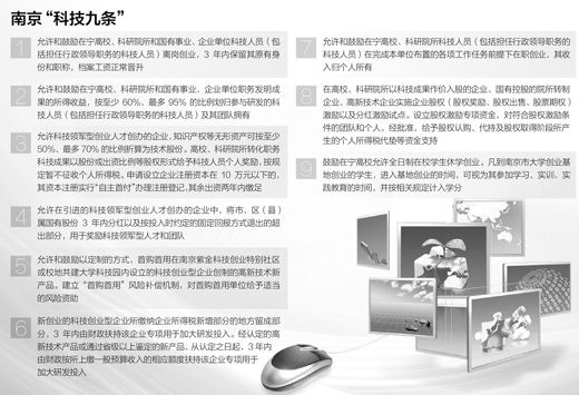 原题:南京出台“科技九条”,鼓励科技人员、高校师生创业创新——