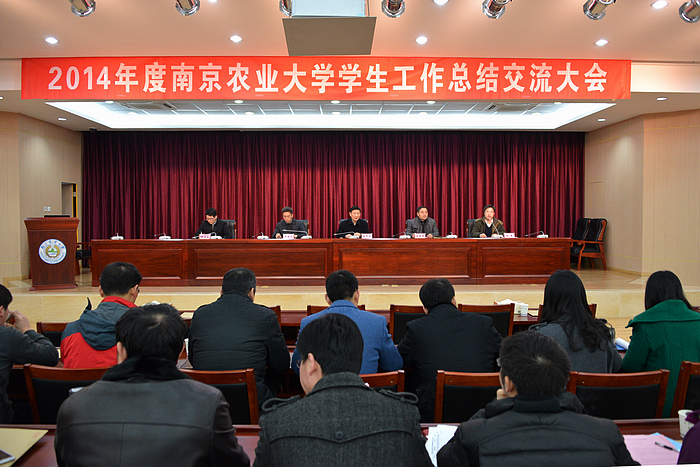 12月30日上午,我校2014年度学生工作总结交流大会在金陵研究院三楼报告厅举行。全校18个学院分别汇报和交流了2014年的学生工作情况。校党委副书记、纪委书记盛邦跃出席会议并讲话,校党委常委、党办主任刘营军,校团委书记夏镇波,学生工作处副处长刘亮,研究生工作部副部长姚志友,学生工作处、校团委、研究生工作部全体工作人员以及各学院分管学生工作的负责同志及专兼职辅导员参加会议。会议由刘亮主持。