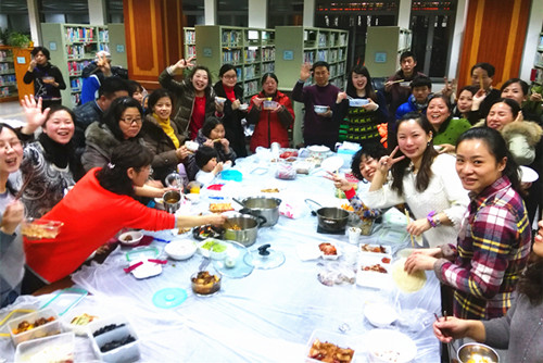 1月9日下午,图书馆读者服务部围绕“和谐·幸福图书馆”主题,开展“厨艺展示、包饺子技能比赛”活动。图书馆领导倪峰、查贵庭、唐慧燕参加了活动,并亲自为大家下水饺。
