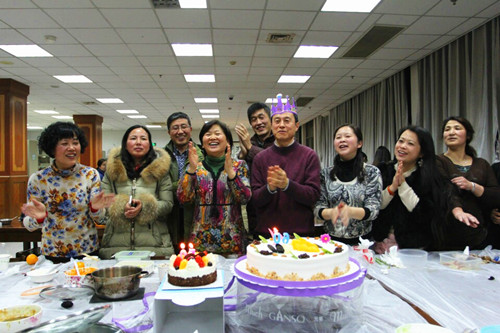 下午5点半闭馆后,读者服务部全体馆员端着各自经心烹饪的佳肴齐聚第一借阅室,共同品尝美食、交流厨艺,并评选出当晚的最佳菜品。之后的包饺子比赛,馆员们分工合作,配合默契,和面、擀皮、和馅、包饺子,一片欢声笑语、其乐融融。当晚恰逢陆芹英和康健两位馆员的生日,同事们还为他们定制了生日蛋糕,并一起唱着生日歌为他们送上生日祝福。