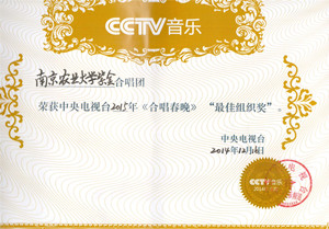 2014年12月我校紫金合唱团应邀参加中央电视台音乐频道《一起欢唱吧——2015春节特别节目》演出录制。获得了中央电视台颁发的“最佳表演奖”和“最佳组织奖”。
