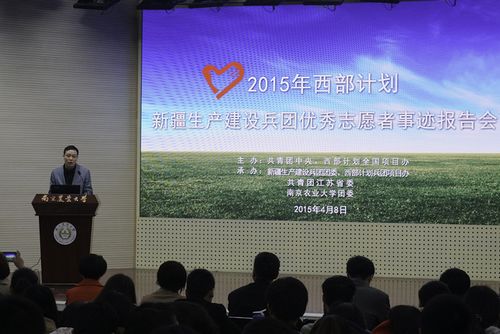 4月8日下午,大学生志愿服务西部计划新疆生产建设兵团优秀志愿者宣讲会在我校大学生活动中心举行。新疆生产建设兵团团委副书记王子彬、团委志工部负责人田华,江苏团省委志工部调研员施静芝出席宣讲会。