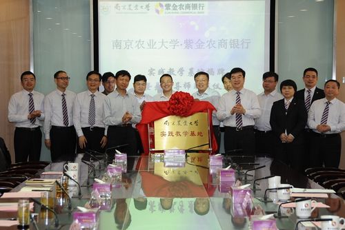 近日,我校与紫金农商银行总行举行“南京农业大学——紫金农商银行实践教学基地”揭牌仪式,为双方开展多层次、多领域、全方位的合作奠定坚实基础。我校教务处处长王恬、金融学院院长陈东平,紫金农商银行董事长张小军、副董事长黄维平、副行长周石华等参加揭牌仪式。