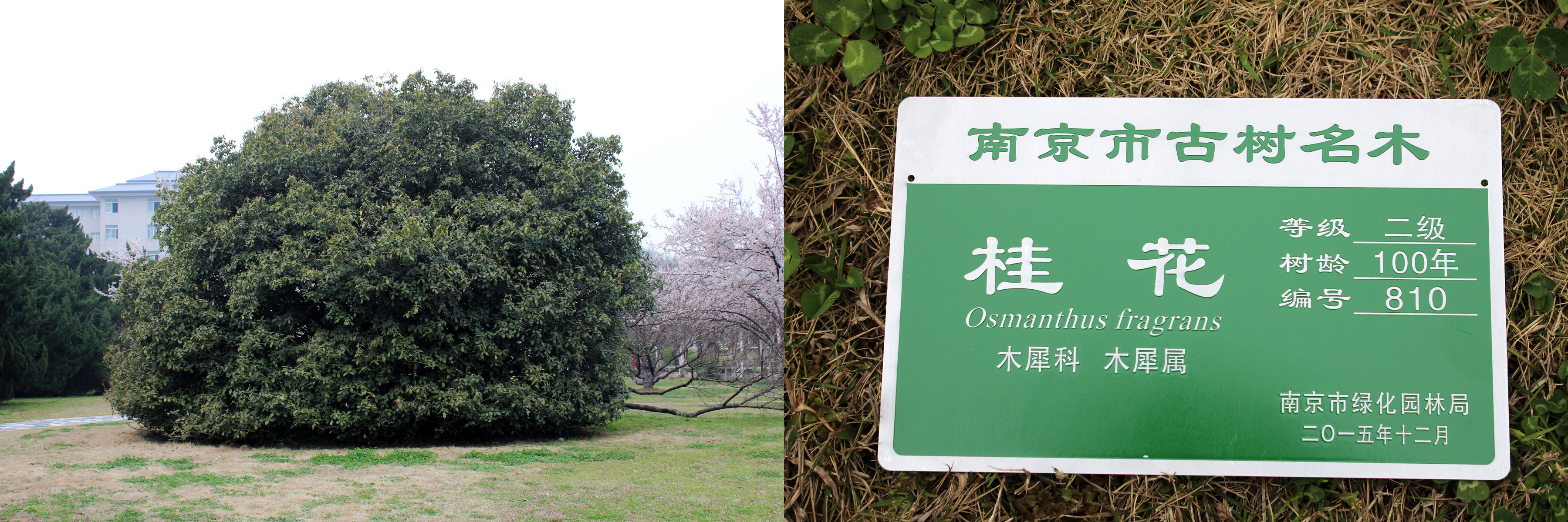目前,我校有4株树木列入了南京市第五批古树名木保护名单,其中古树为主楼北侧2株100年树龄的桂花及1株100年树龄的龙柏,名木为主楼南侧1株80年树龄的杨梅。