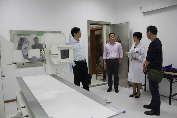 座谈会后,扬州大学后勤保障处一行实地参观了校医院教职工体检现场和各楼层功能分布等情况,重点对医院放射科的DR机房设备的使用现状和防护改造工程进行考察。