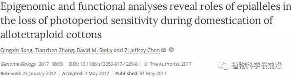 近日,Genome biology在线发表了南京农业大学张天真教授课题组与德克萨斯大学杰夫瑞·陈的课题组合作的题为“Epigenomic and functional analyses reveal roles of epialleles in the loss of photoperiod sensitivity during domestication of allotetraploid cottons”研究论文,论文报道了首次绘制出棉花表观遗传基因的“甲基化基因图谱”,即野生棉和种植棉之间500多种表观遗传基因的差异,为通过表观修饰育种培育出高产优质棉花提供了重要依据。