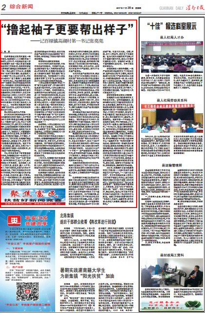 张亮亮作为省委驻灌南帮扶工作队党委委员、宣传报道组组长,他深知做好宣传工作能传播扶贫好声音,弘扬正能量,凝聚更多社会力量,推动形成脱贫攻坚的强大合力。张亮亮跟所有队员一样都担任驻村第一书记,村里的工作要做好,但宣传工作也不能落后,他经常是白天在村里忙,晚上周末加班写材料、搞宣传。不管到哪儿,他都背着一个双肩包,那是他的百宝箱,平时用的电脑、材料、笔记本等一应俱全,随时随地都能工作。一年半以来,他自己撰写的稿件在《新华日报》、《中国县域经济报》、《连云港日报》、《灌南日报》、中国经济网、中国青年网、中国江苏网等媒体发表;他编辑工作队工作简报44期,采写新闻信息130多篇;与县新闻中心一起组织开展“扶贫好新闻”评选活动,《灌南日报》采编扶贫新闻100余篇;协助各级新闻记者采访,策划新闻报道,准备新闻素材等;组织灌南电视台制作完成了工作队队歌《我们走在精准扶贫的大道上》MV和工作队《帮扶项目建设纪实》专题片等;制作了工作宣传展板,协助县委宣传部完成了《灌南日报》扶贫专版等。截至目前,他撰写工作总结汇报稿、领导讲话稿、调研报告等20余篇。