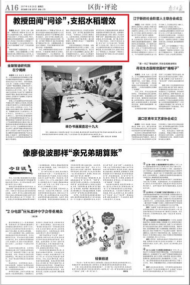 本报讯(通讯员 习楚涵 记者 姜静 王聪) “桦墅村的‘南粳46’型大米,被誉为江苏最好吃的大米。但是这两年产量不如以前多了,不知怎么回事。”昨日,在栖霞区西岗街道桦墅村,心存疑虑的农业人员迎来了两名南农大的教授——街道“创业栖霞”人才企业的技术专家,他们此行是给粳稻“问诊”、为农业发展支招。