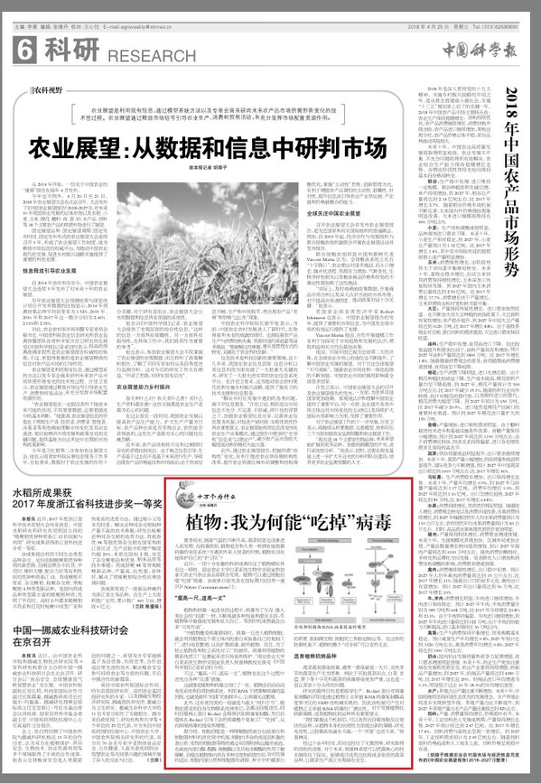 “我们掌握这个机制后,可以选育出自噬细胞反应更快的品种,从植物本身的抗病性方面提出新的策略,研究免疫性,让防御系统滴水不漏,一个‘坏蛋’也进不来。”侯喜林说。